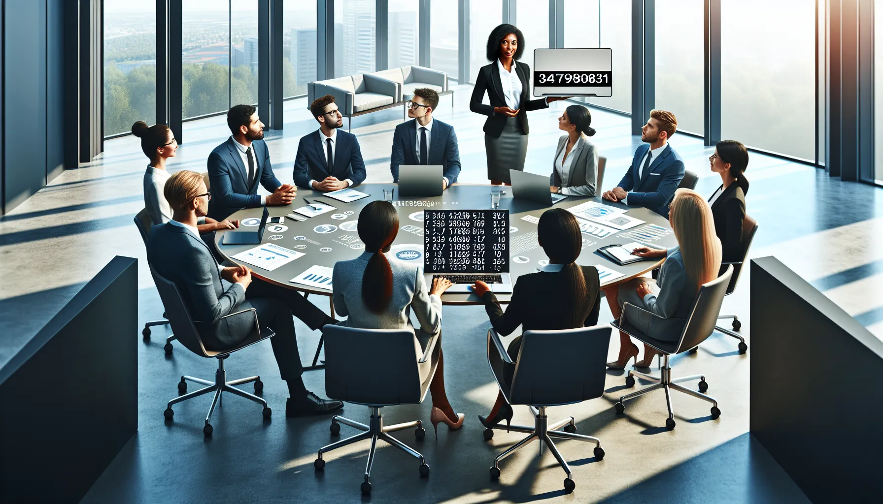 diverse professionals discussing personal relationships and numbers in a modern office.